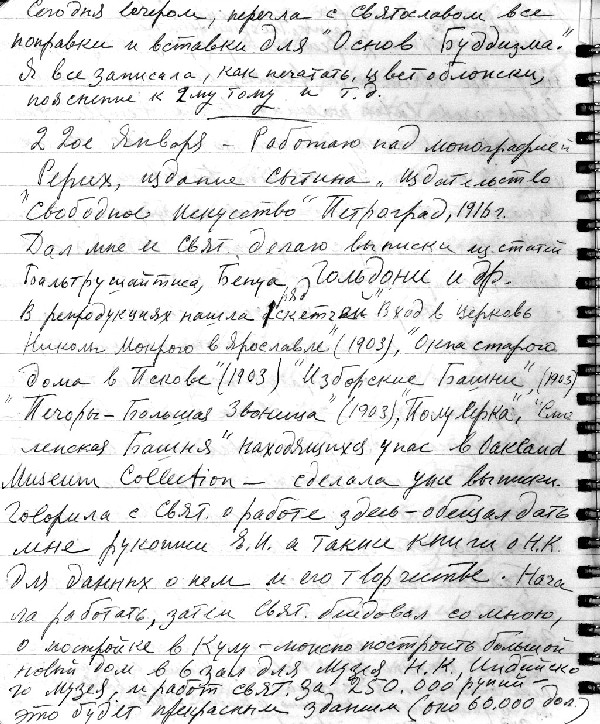 Спасибо, Павел, за образцы почерка Фосдик. Нет никакого сомнения, что указанная тетрадь из Амхёрст-колледжа (Тетрадь неустановленного почерка: 1924 (djvu, 1306 kB) ), наполовину написана почерком Фосдик, а наполовину Е.И.Рерих. Наверное, Фосдик помогала Е.И.Рерих делать копию с её тетради.